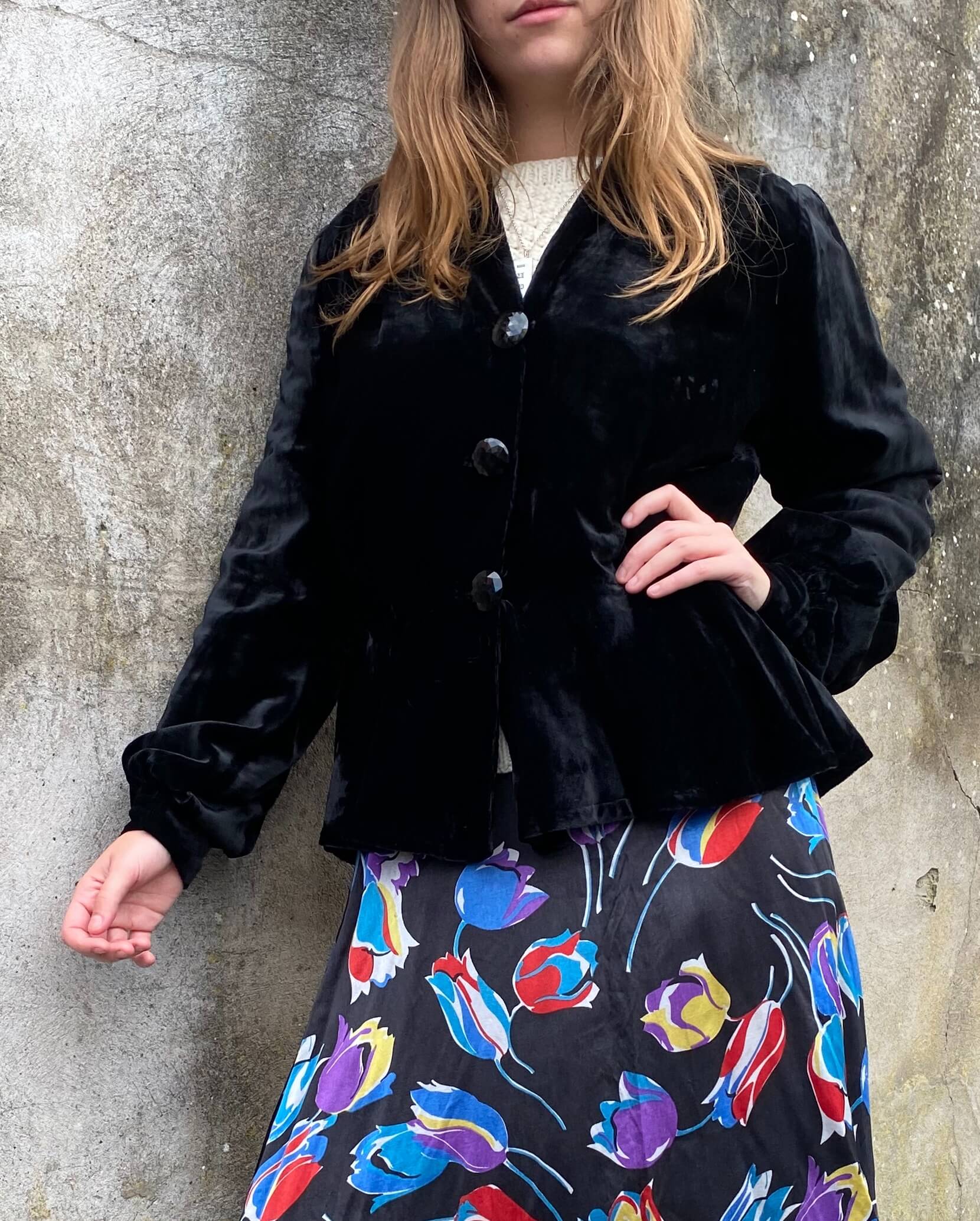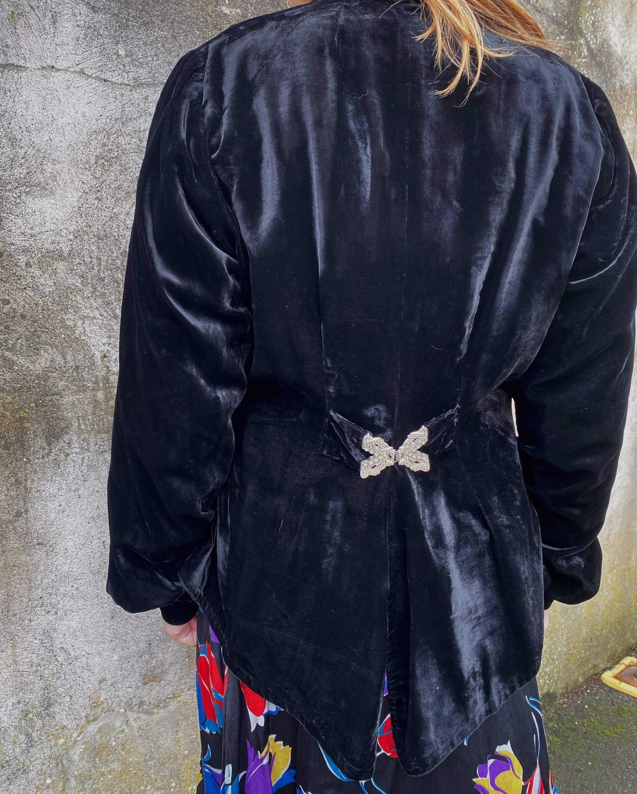 1930s Black Silk Velvet Jacket – Sophisticated Vintage Black Silk Velvet Jacket
