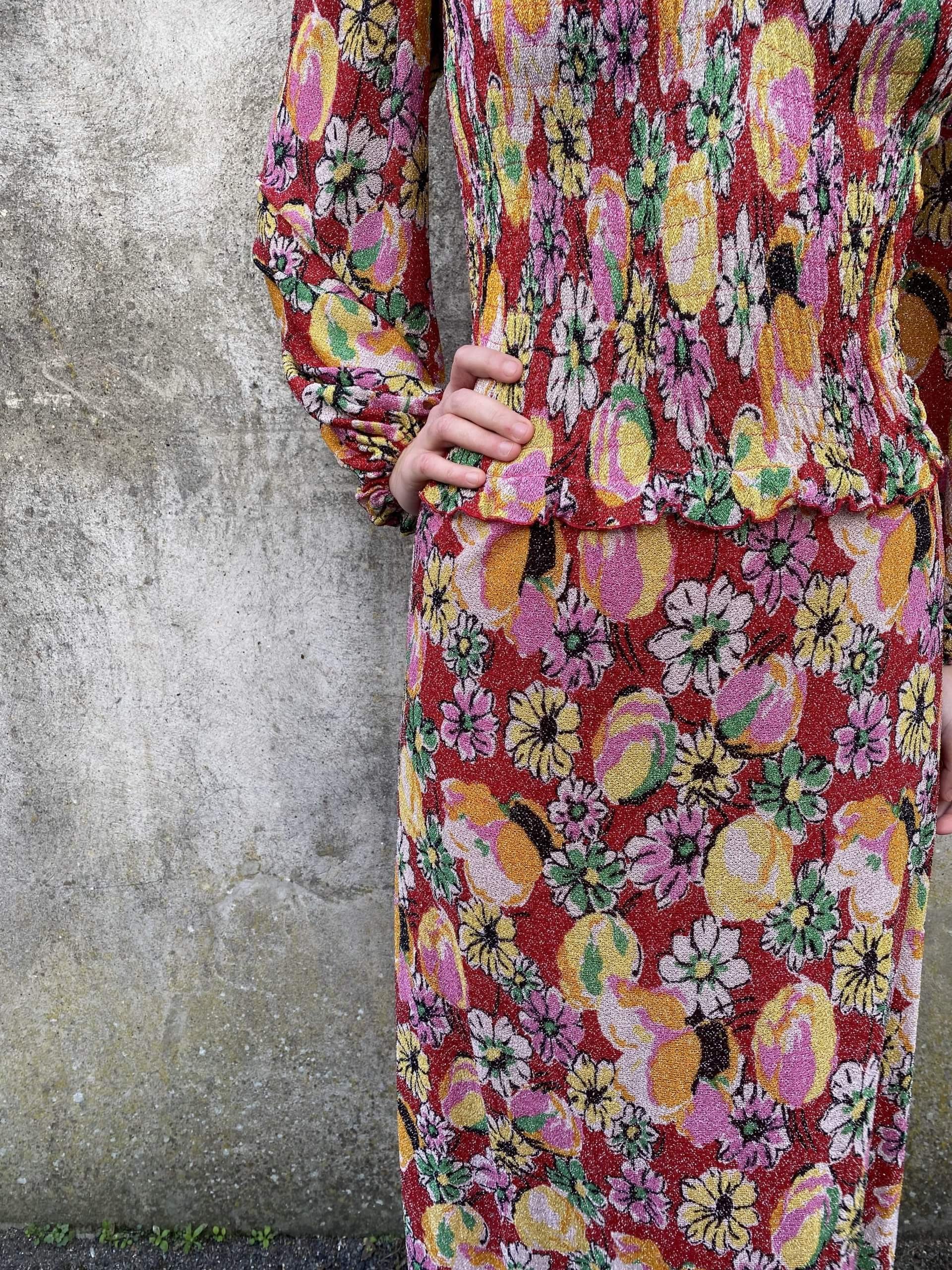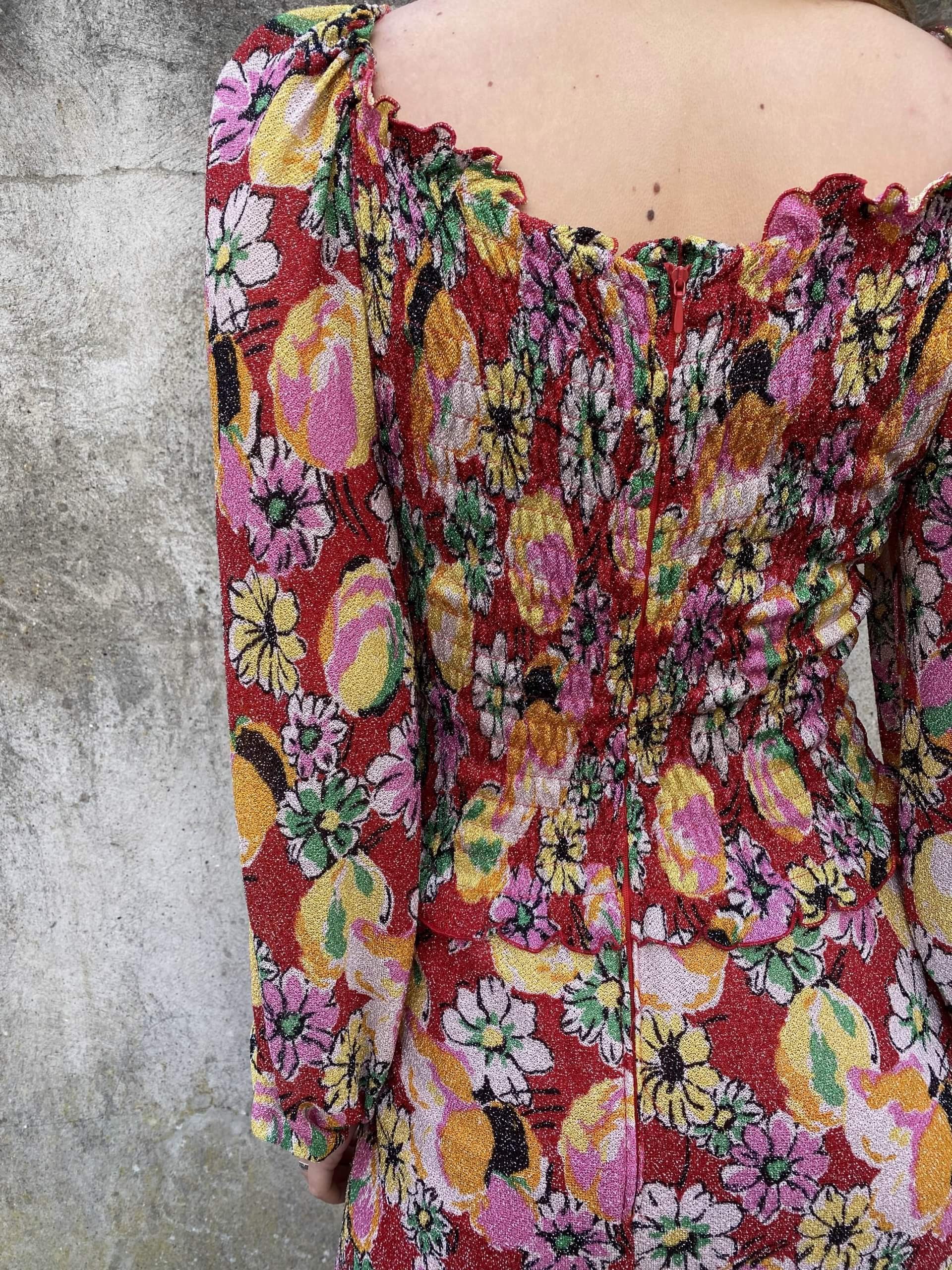 Whether you’re attending a music festival, a garden party, or an evening soirée, this Lurex Floral Maxi Dress is sure to turn heads. Its shimmering fabric, vibrant print, and flowing silhouette capture the essence of 1970s fashion with timeless appeal.