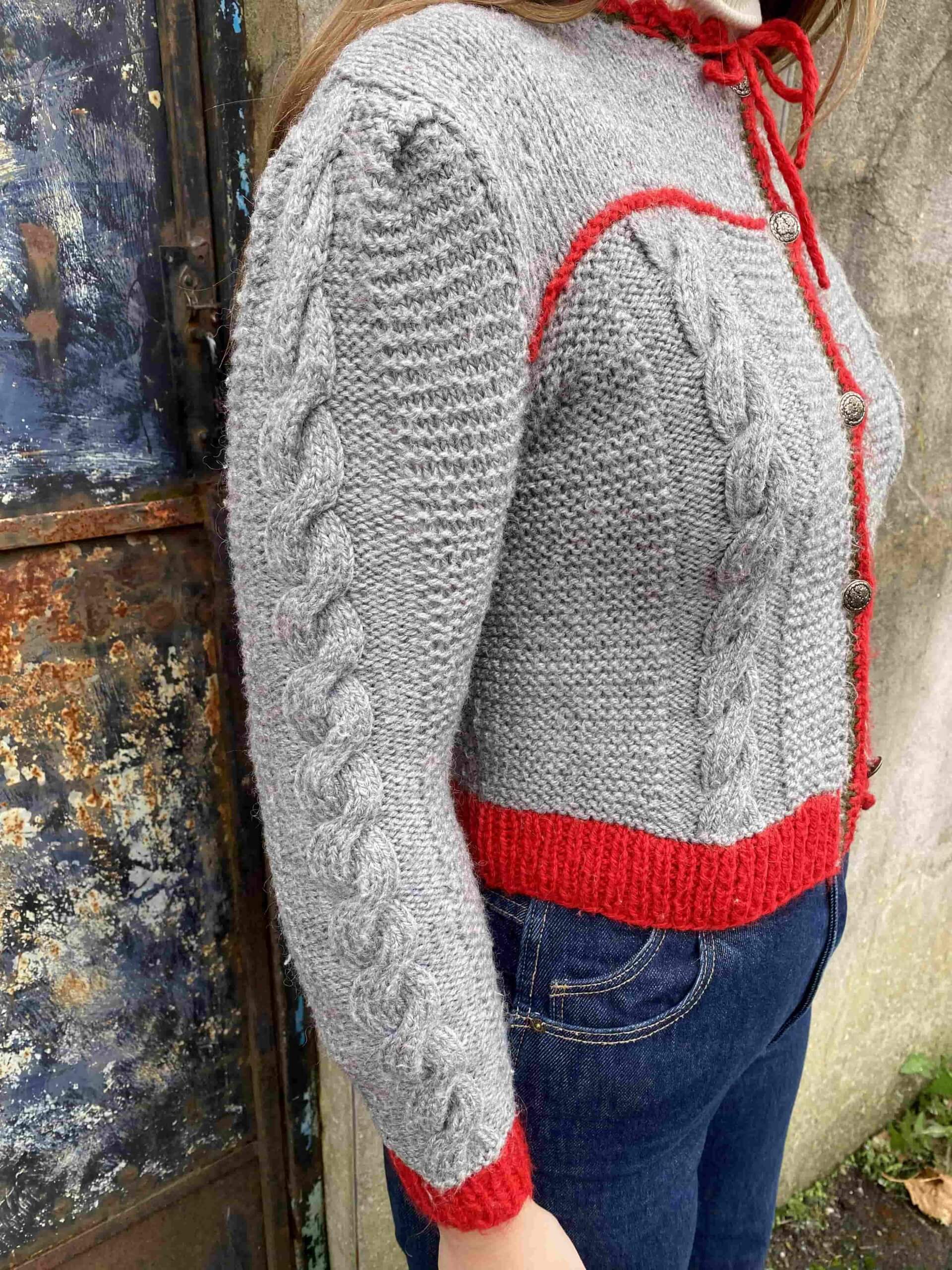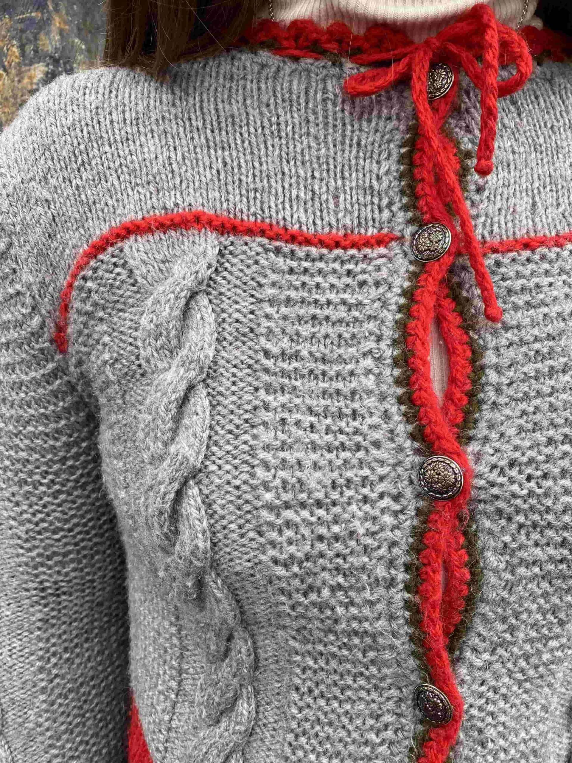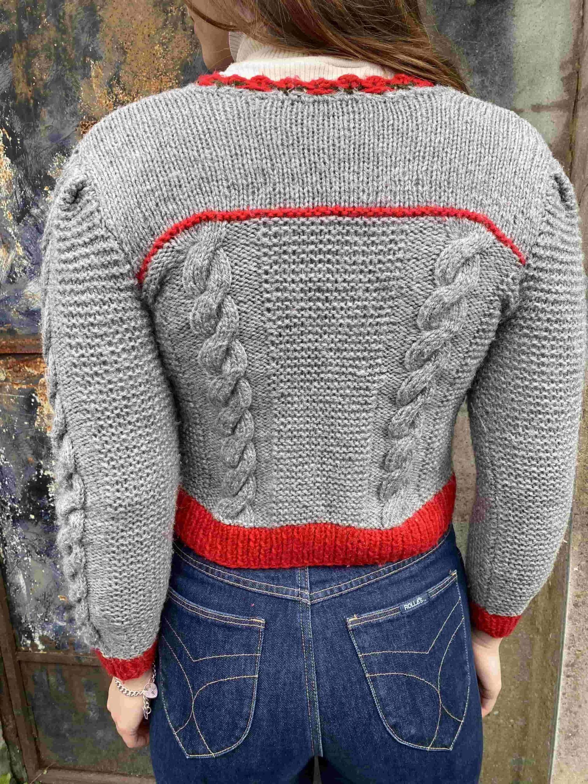Bold 1970s Grey and Red Austrian Cardigan