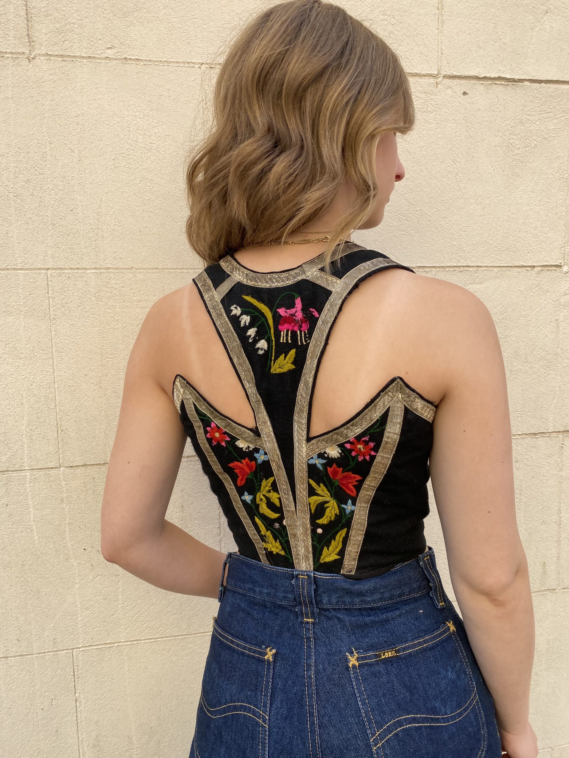 Experience the rich heritage of Eastern European folk craftsmanship with this beautiful antique embroidered top, featuring intricate detailing and unique metal closures. This vintage piece blends traditional design with modern flair, making it a versatile addition to any wardrobe. The bold embroidery showcases the artistry of Eastern Europe, while the metal fastenings add a distinctive, handcrafted touch.