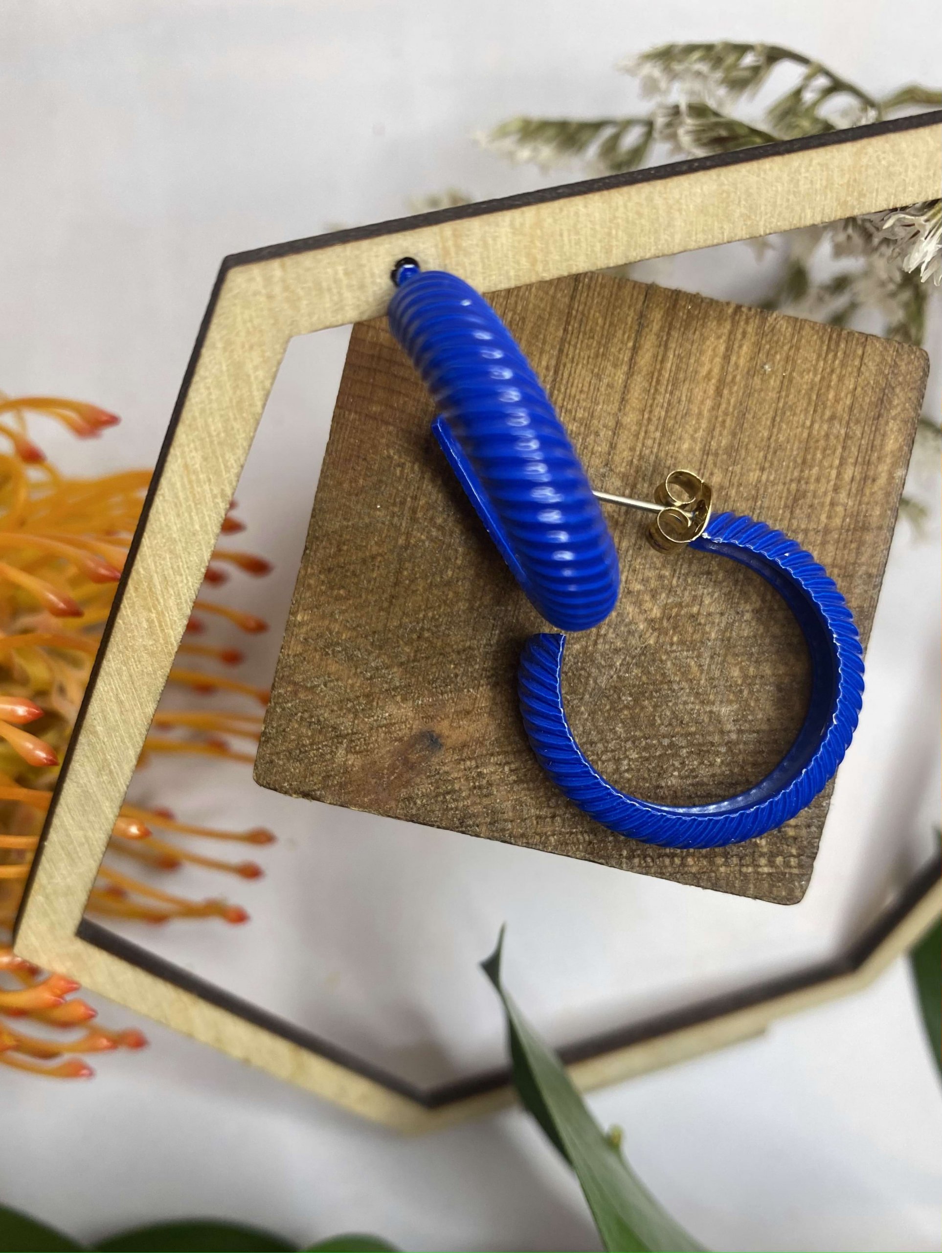 Blue Ridged Hoop Earrings – Bold Texture and Vibrant Color