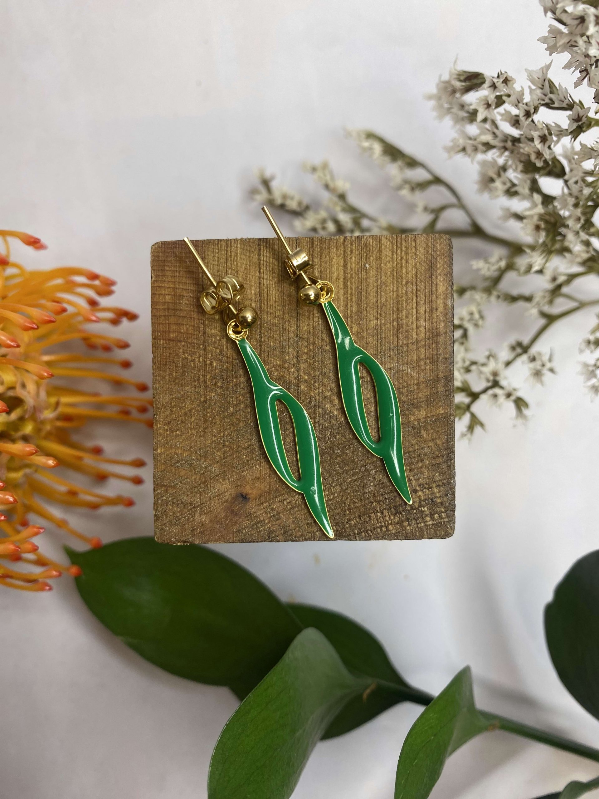 Green and Gold Abstract Earrings – A Modern Twist on Classic Elegance