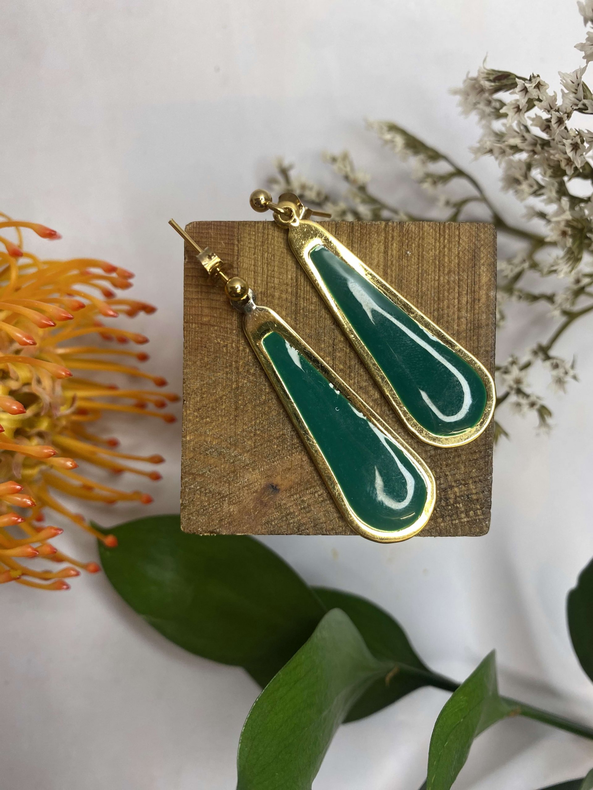 The Green and Gold Drop Earrings bring together classic elegance with contemporary flair, making them a perfect statement piece for any occasion.