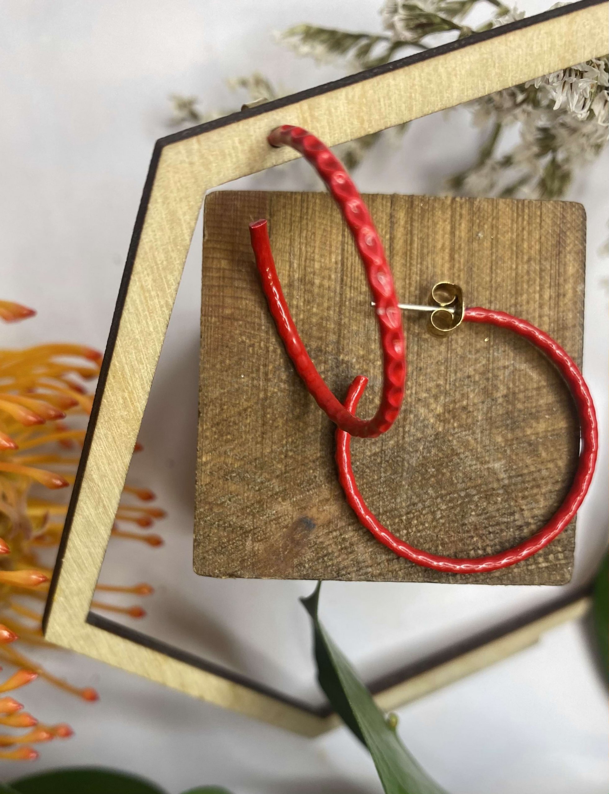 Red Enamel Hoop Earrings – Bold Elegance in a Classic Design