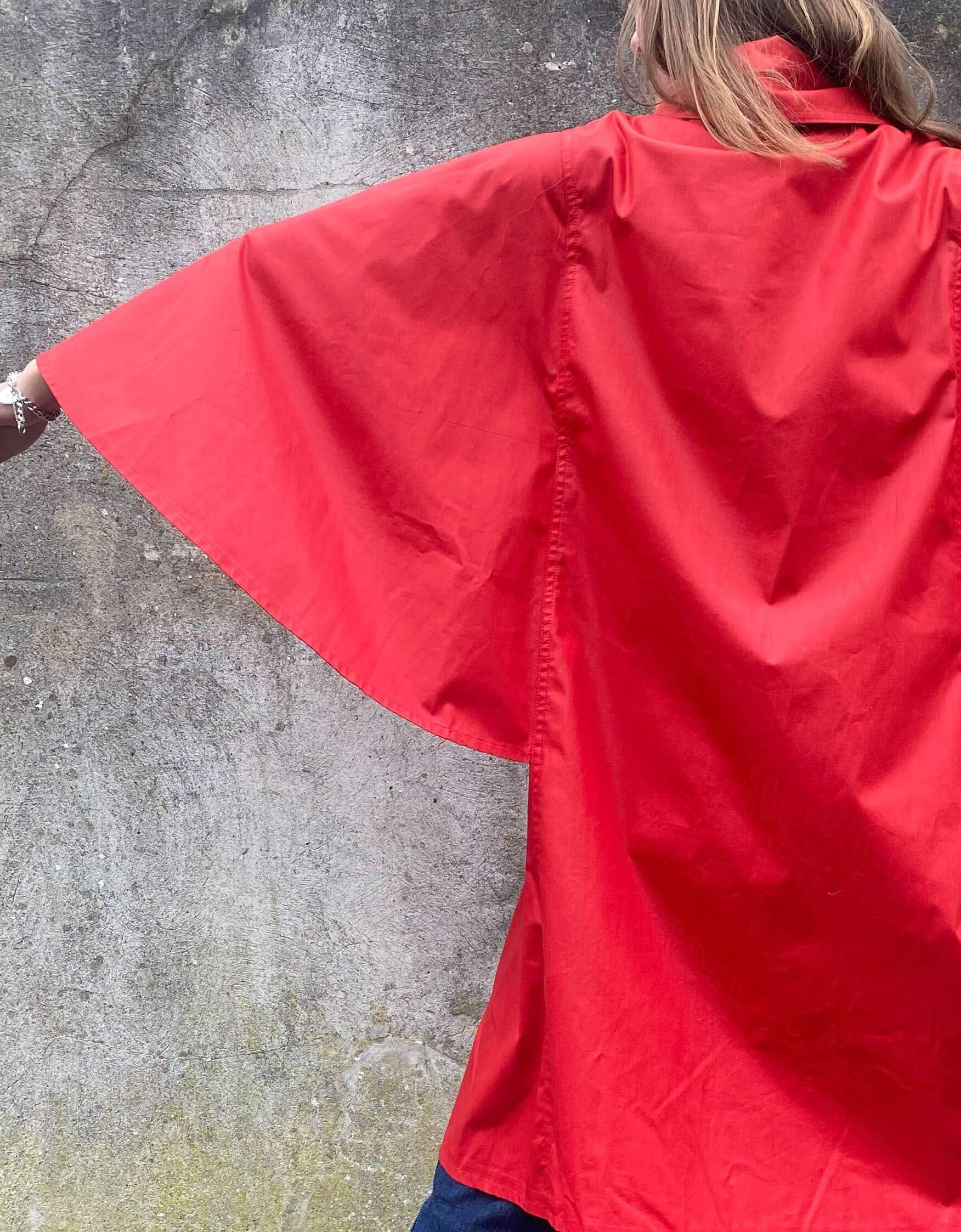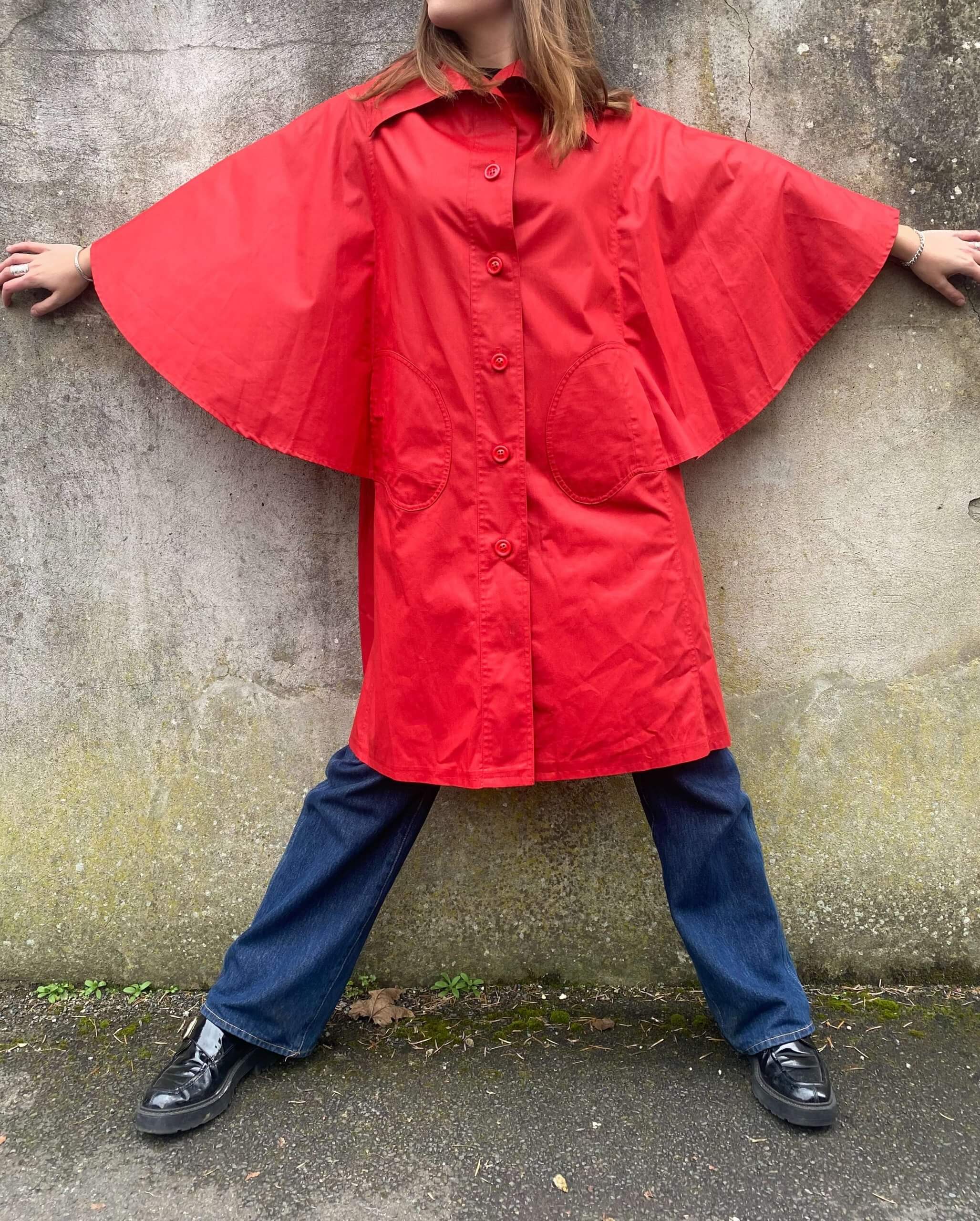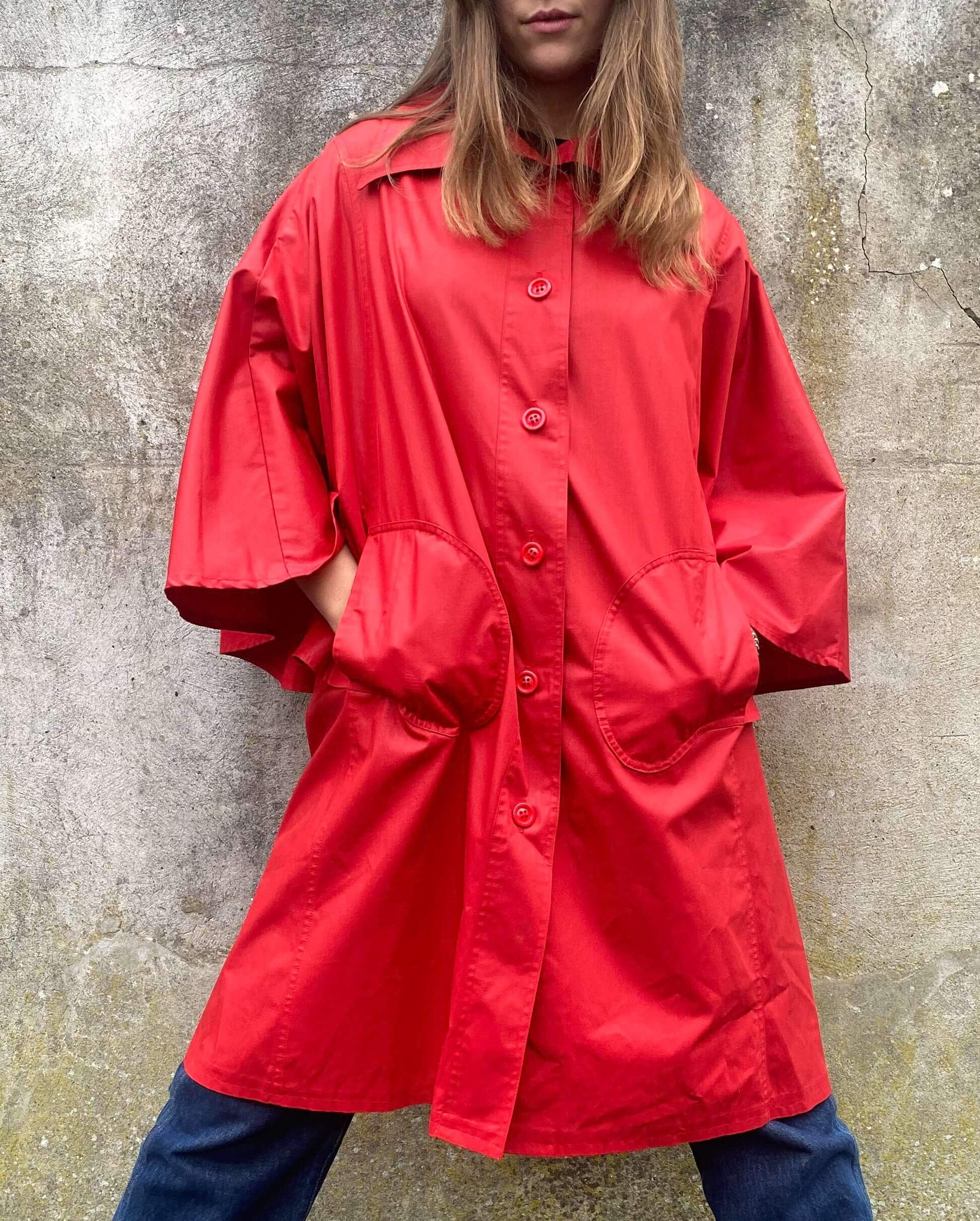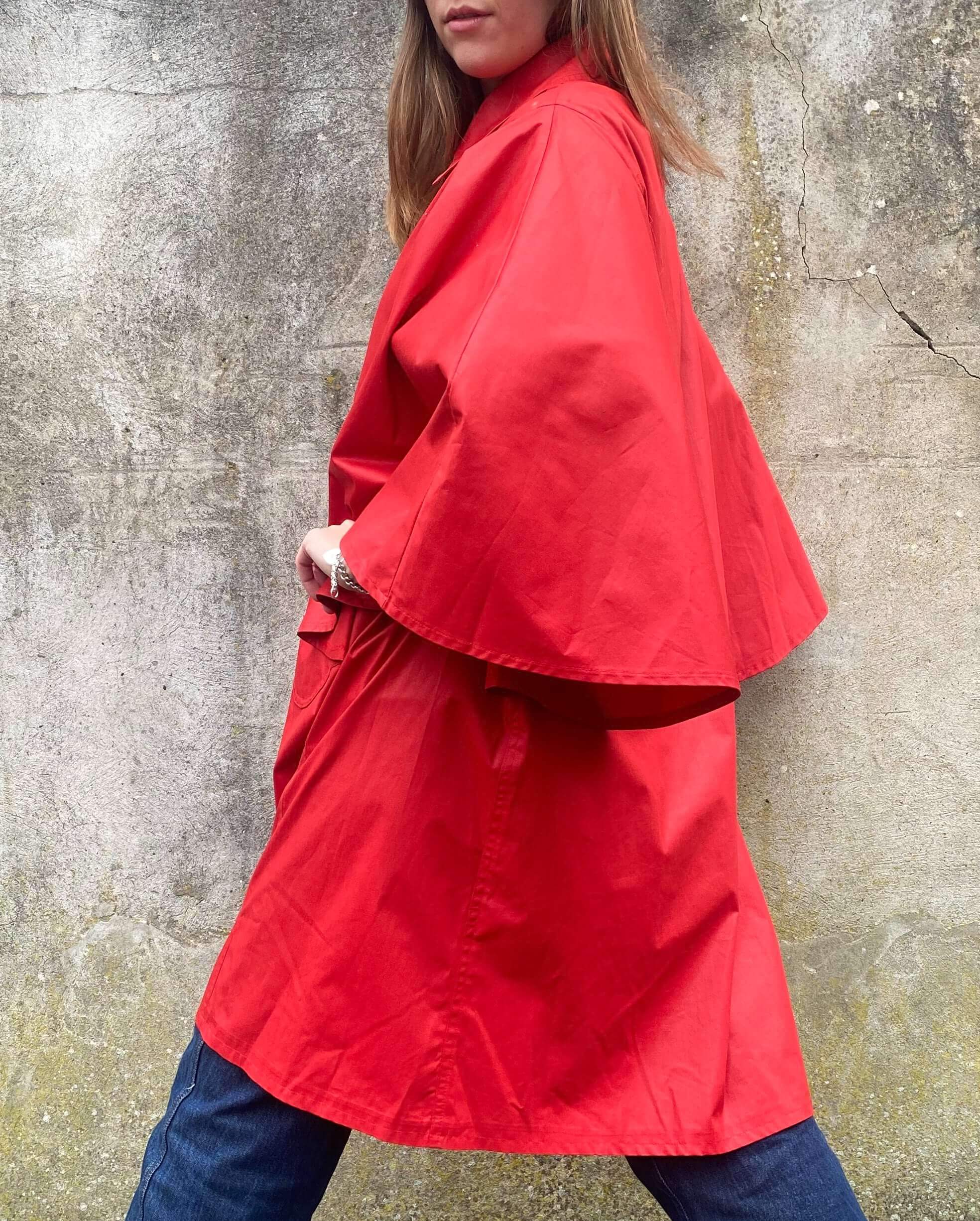 1960s Red Wax Cotton Mac – Iconic Vintage Outerwear with Bold Elegance
