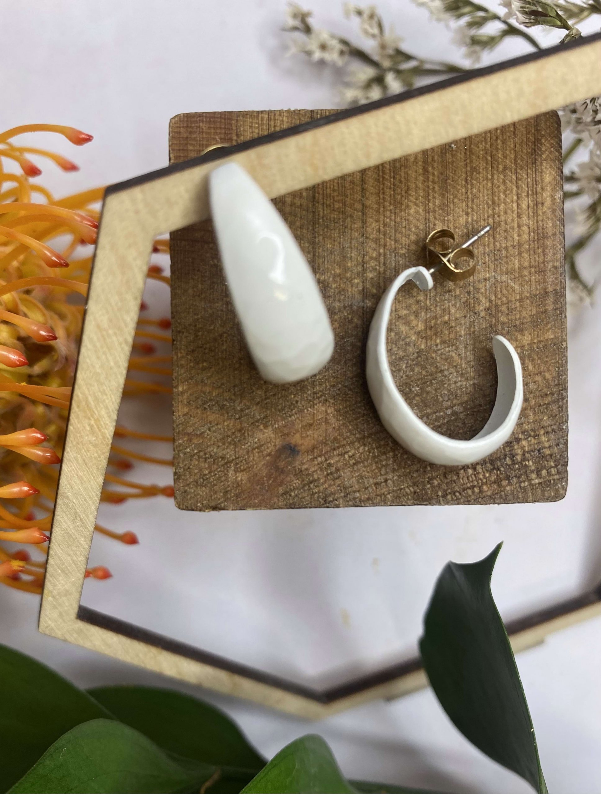 White Hammered Enamel Earrings – Modern Minimalism with a Textured Twist